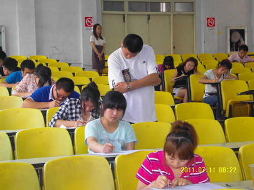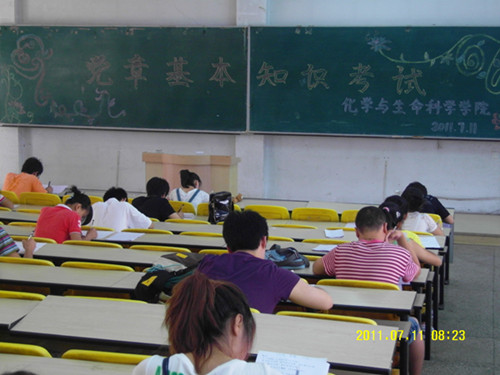 于7月11日8时在综合楼第一阶梯教室举行了党章基础知识考试。学院学生党支部书记于伟莅临考试现场。
