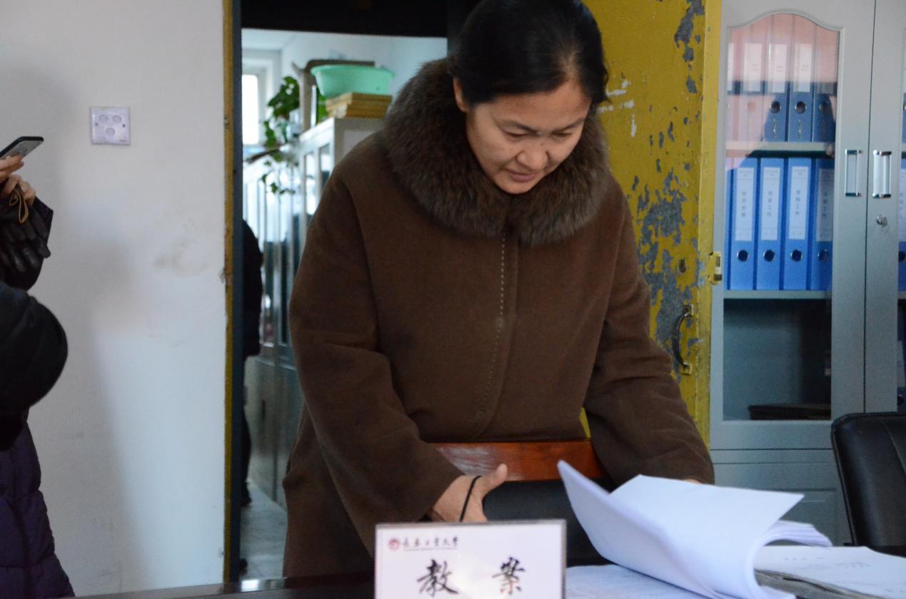 院长敖玉辉认真查看教学档案